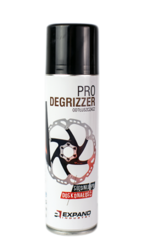 Odtłuszczacz Expand Pro Degrizzer to skuteczny preparat do odtłuszczania tarcz hamulcowych, przerzutek oraz gwintowanych części. Szybko usuwa zabrudzenia ze smarów, tłuszczu, pyłu hamulcowego, oleju, silikonu i innych zabrudzeń, jednocześnie wypierając wodę i odparowując bez pozostawiania nalotu.