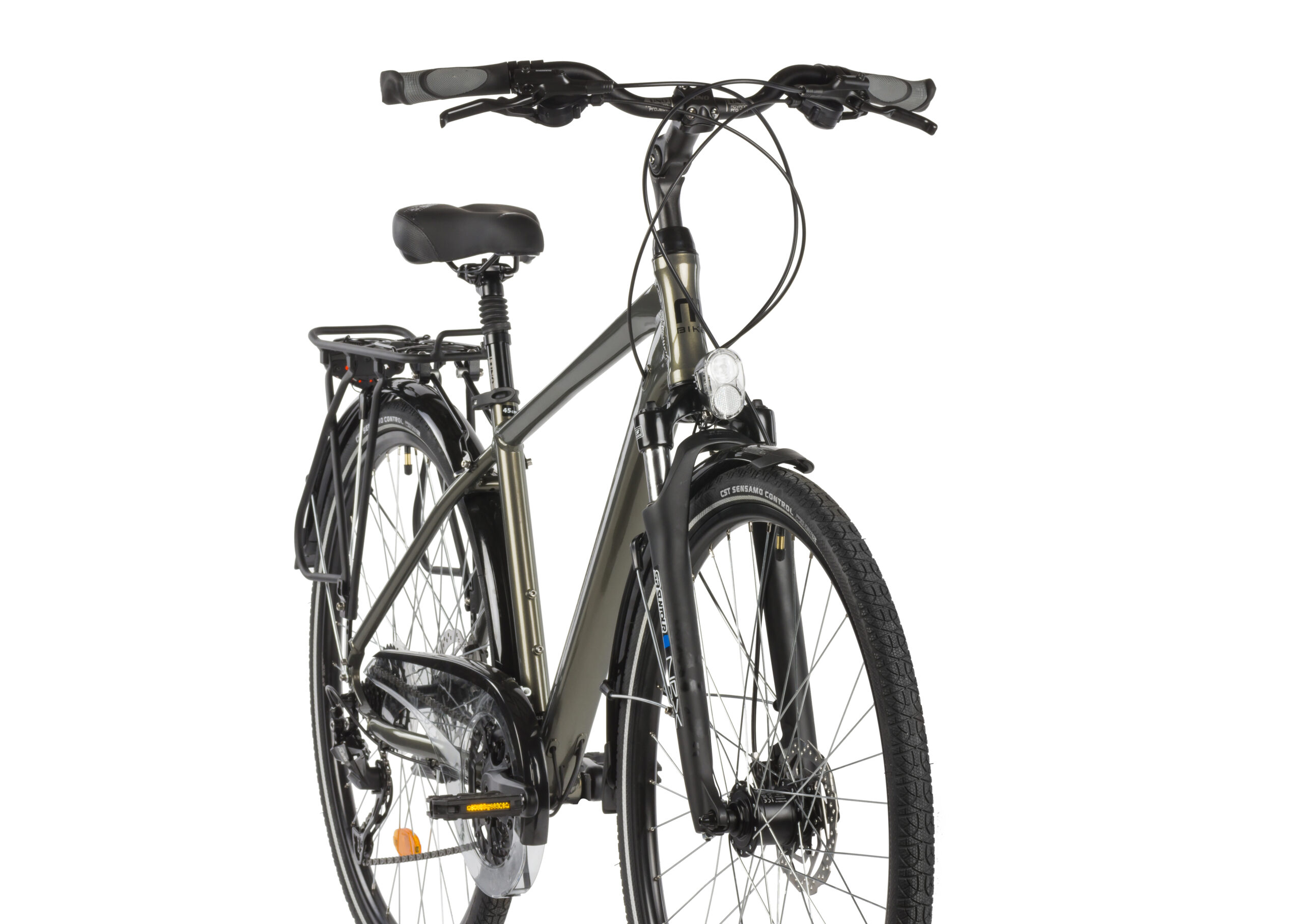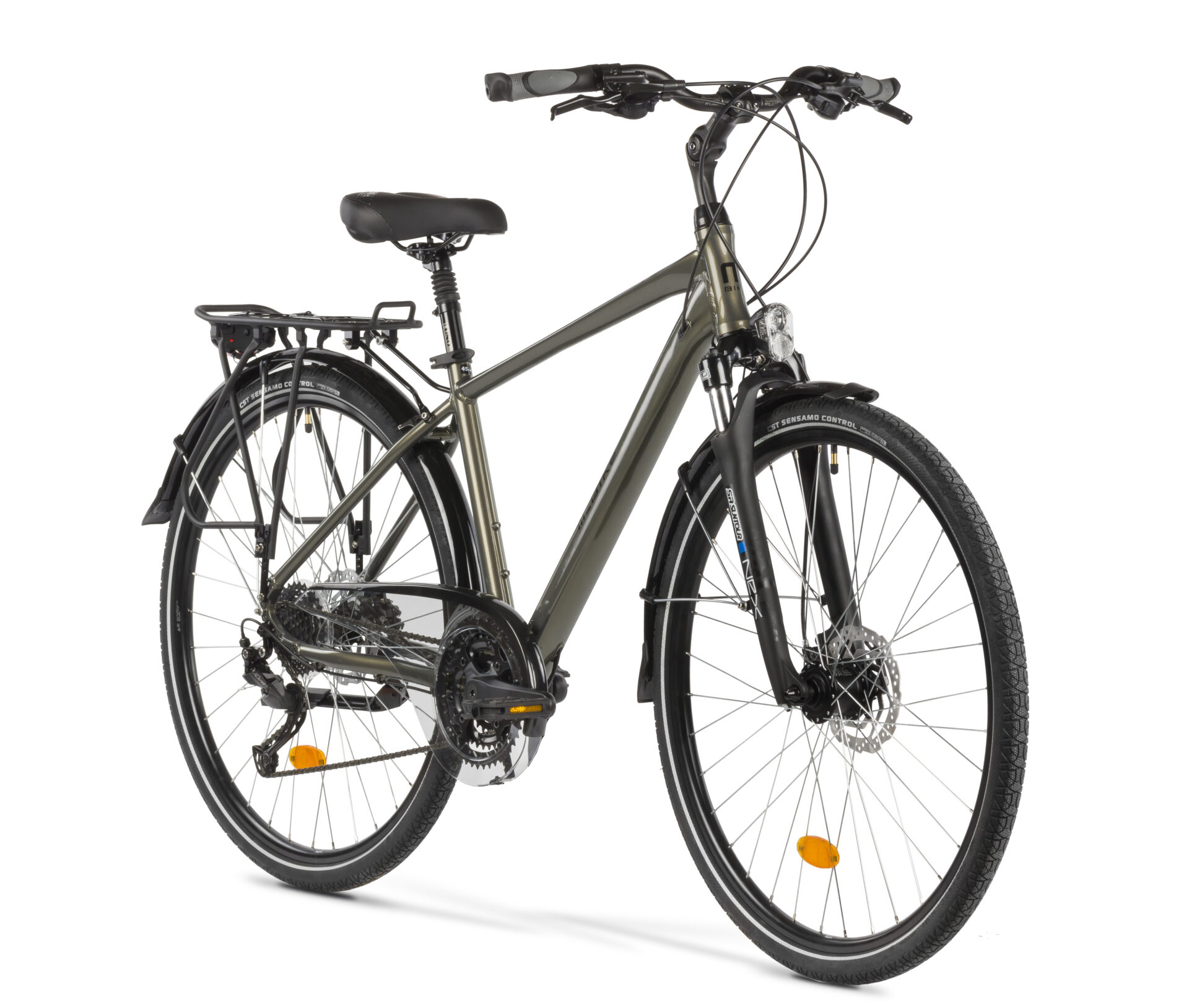 - Regulowany mostek, amortyzowana sztyca, bagażnik pod sakwy, pełne błotniki, stopka, osłona łańcucha, oświetlenie AXA Echo 15 (przód) i AXA Spark (tył)