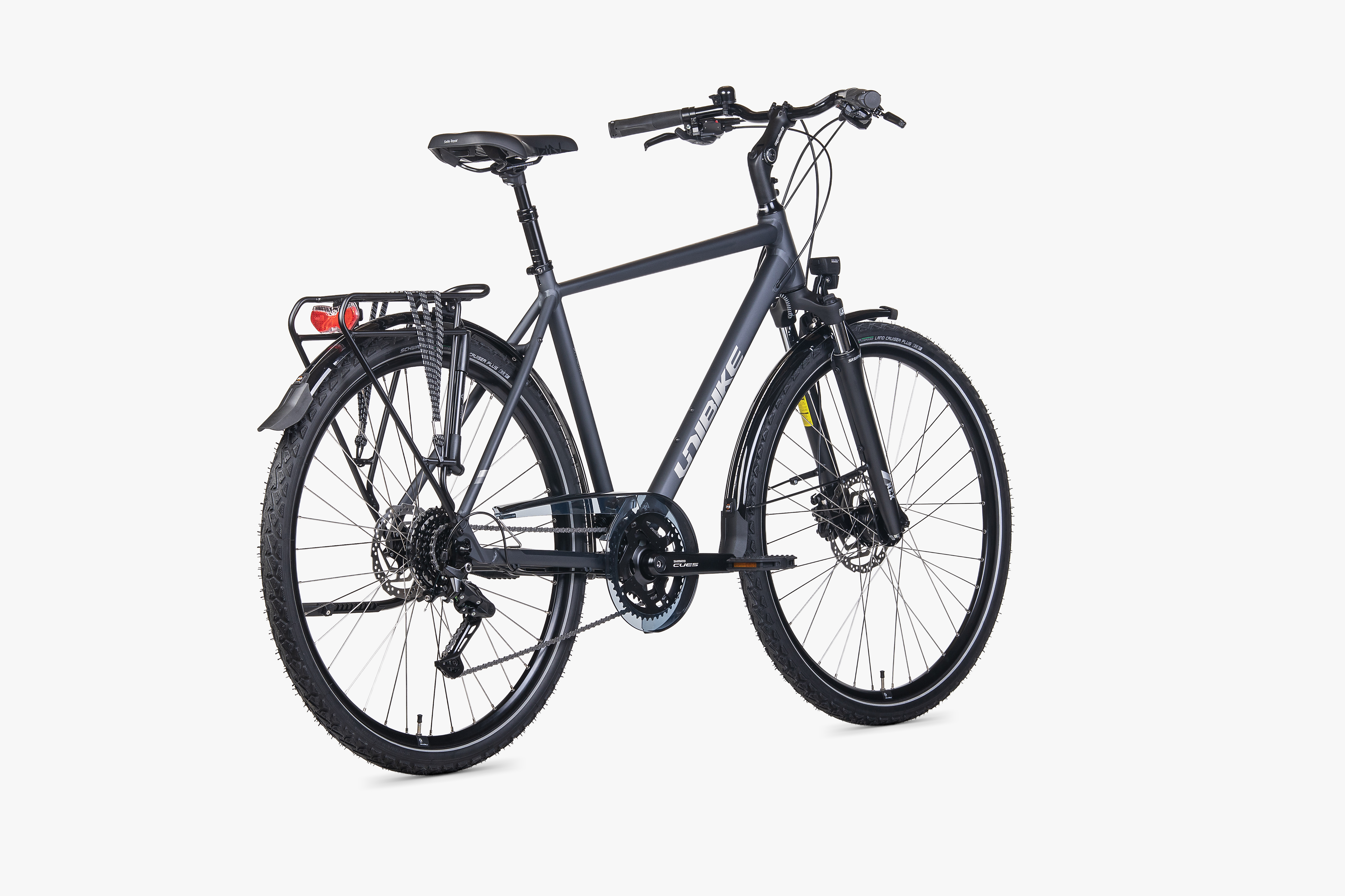 Opony Schwalbe Land Cruiser w rozmiarze 28X1.75 gwarantują przyczepność i stabilność na różnych powierzchniach, podczas gdy hydrauliczne hamulce Shimano MT200 zapewniają skuteczne zatrzymywanie w każdej sytuacji. Dodatkowo, wyposażony jest w praktyczne akcesoria, takie jak bagażnik, nóżka, oświetlenie przód i tył, błotniki oraz pompka, które zapewniają wygodę i funkcjonalność podczas każdej podróży. Uniwersalny i wszechstronny, Unibike Voyager LDS to idealny wybór dla wszystkich, którzy poszukują niezawodnego i kompletnego roweru górskiego.